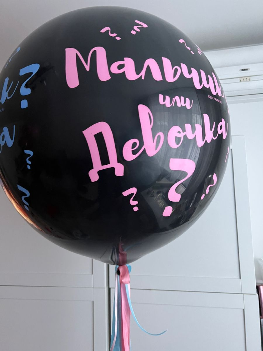 В назначенный день забираете шар, лопаете его иголкой шар, а оттуда разлетаются перья и конфетти голубого или розового цвета :)